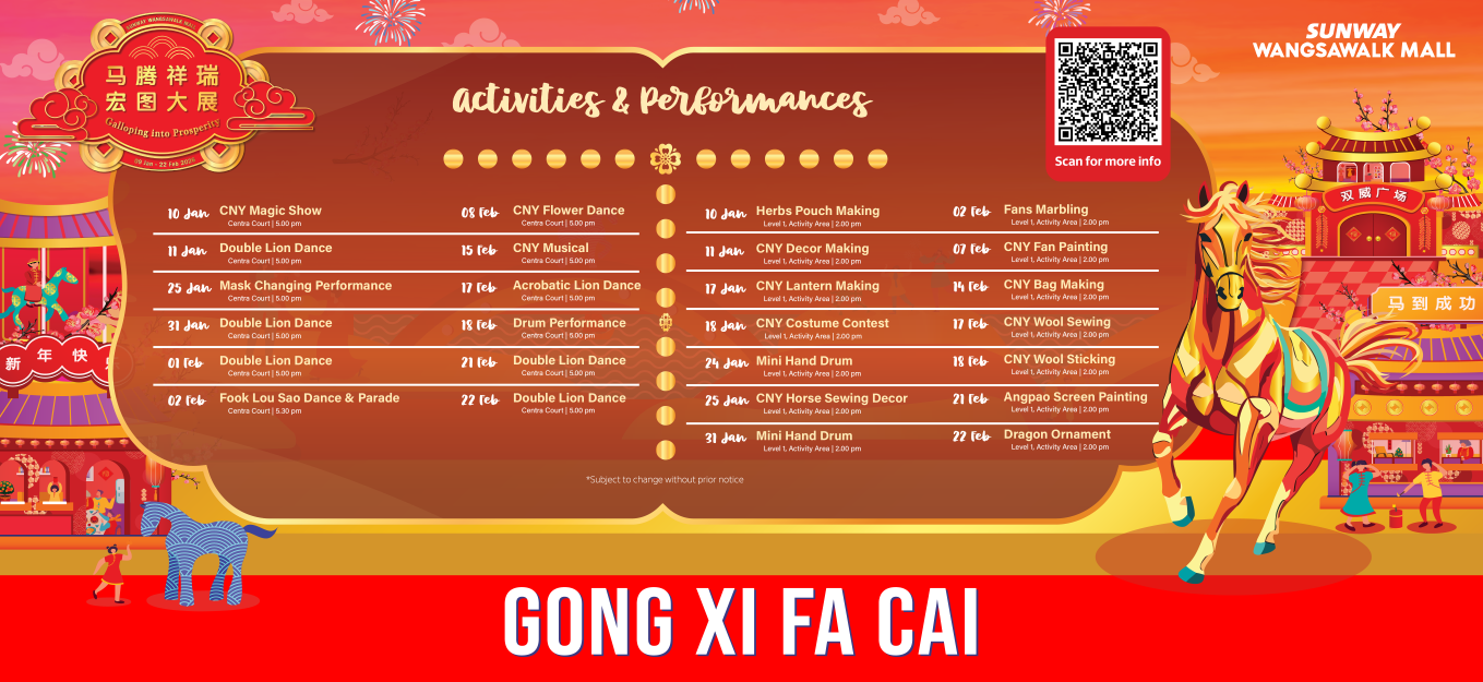 * Sunway Wangsawalk Mall reserves the right to amend the terms & conditions without prior notice and cancel or postpone the event due to unforeseen circumstances or insufficient registrations. If so, participants will be notified accordingly.